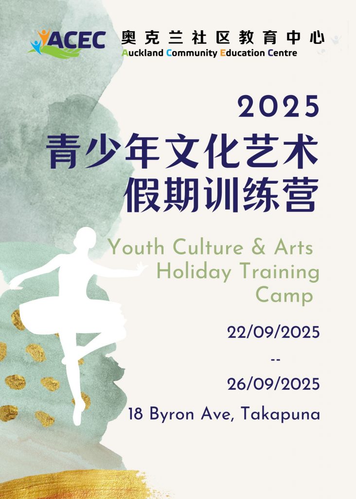 During the New Zealand school break from 22 to 26 September 2025, Auckland Community Education Centre (ACEC) and Aotearoa Art Academy successfully co-hosted the Youth Culture & Arts Holiday Training Camp.